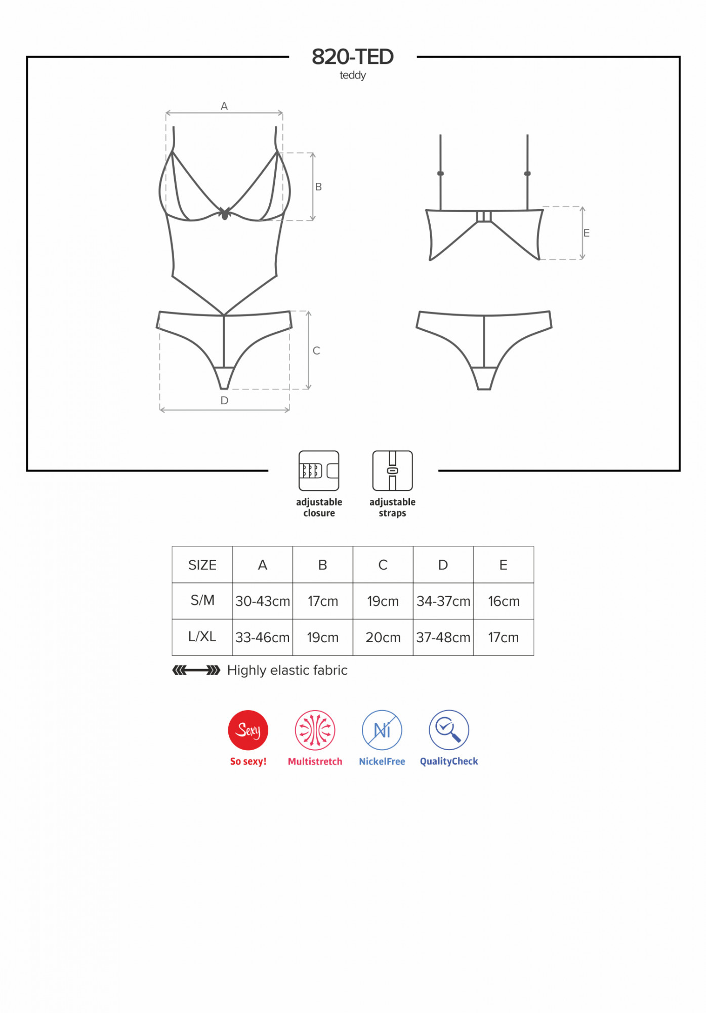 Produkt Body 820-TED teddy - Obsessive prodáváme v těchto velikostech: L/XLa barvách černá5901688214978