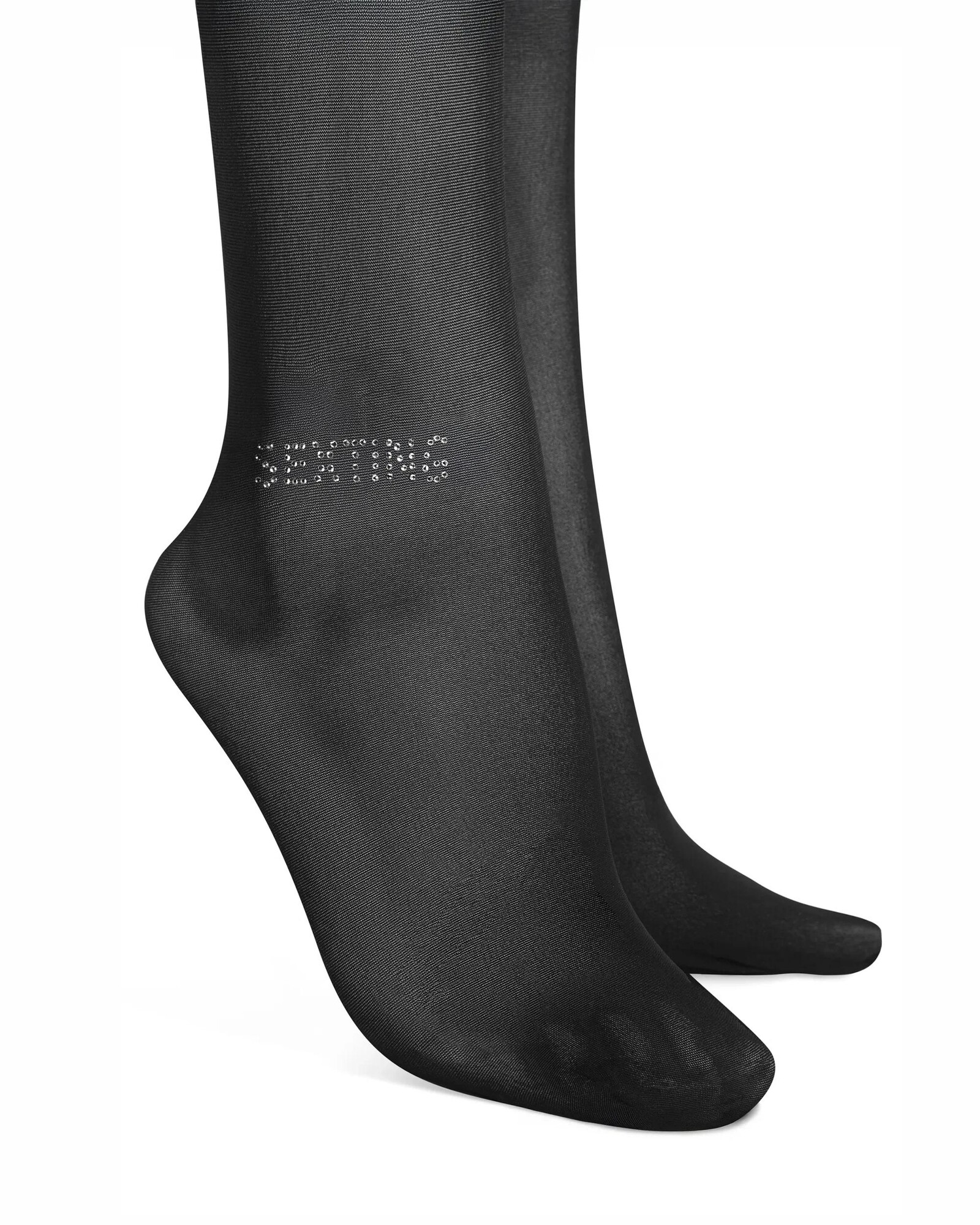 Elegantní, zajímavé, stvořené k provokování. Punčocháče Norless Sexy jsou určeny pro ženy, které vědí, jak vybudovat napětí – pomalu a s plným vědomím své sebejistoty. Poloprůhledný materiál jemně obepíná nohy a zdůrazňuje jejich tvar, zatímco otevřený rozkrok dodává odvážný a smyslný nádech. Jemný nápis „SEXTING“ nad kotníkem se stává provokativním signálem, předehrou ke hře, ve které pravidla určujete Vy.