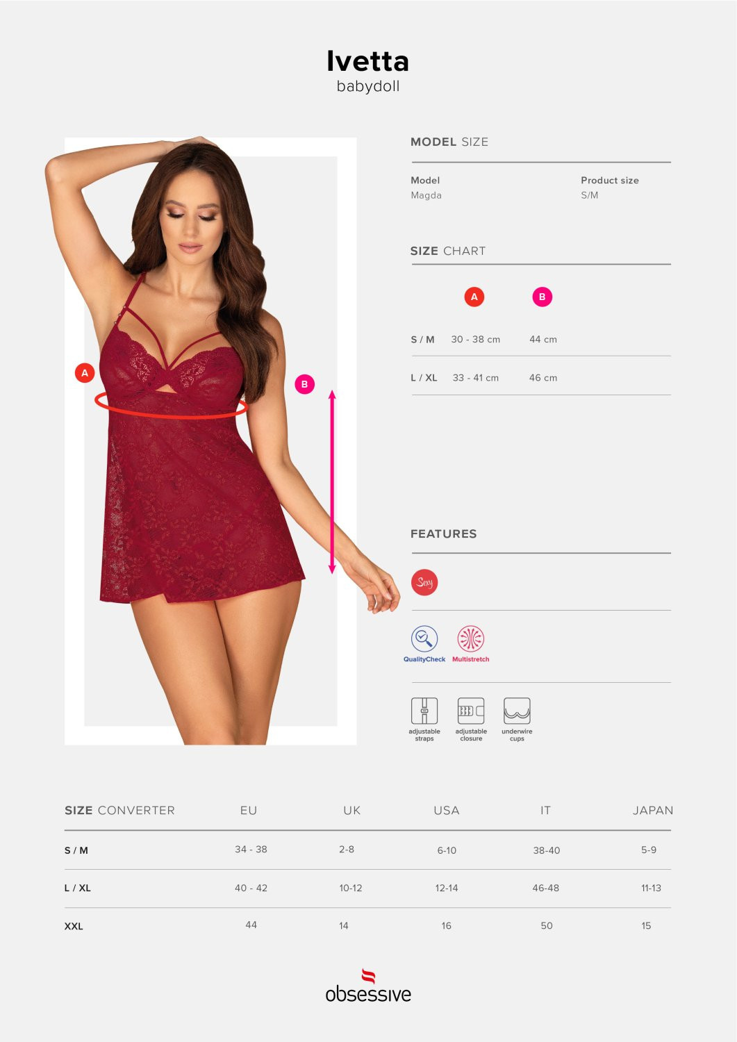 Produkt Dokonalá košilka Ivetta babydoll - Obsessive prodáváme v těchto velikostech: S/Ma barvách bordó5901688229330