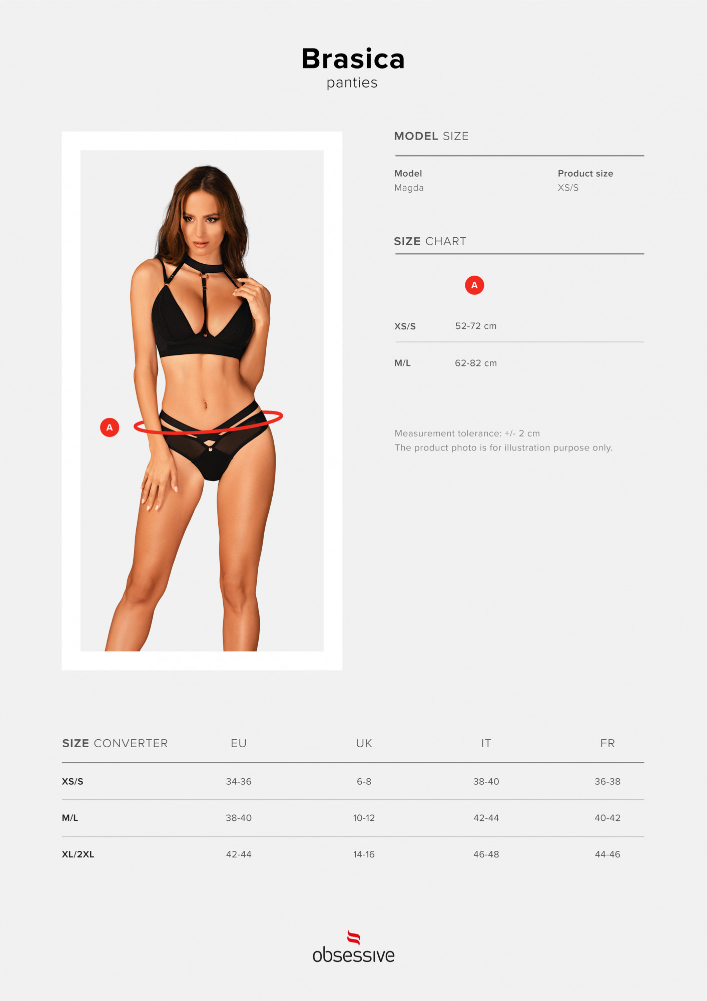 Produkt Elegantní kalhotky Brasica panties - Obsessive prodáváme v těchto velikostech: XS/S, M/La barvách černá5901688250440, 5901688250457