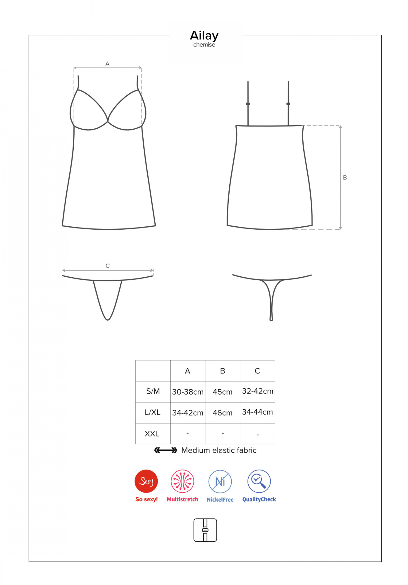 Produkt Fantastická košilka Ailay chemise - Obsessive prodáváme v těchto velikostech: S/Ma barvách černá5901688223123