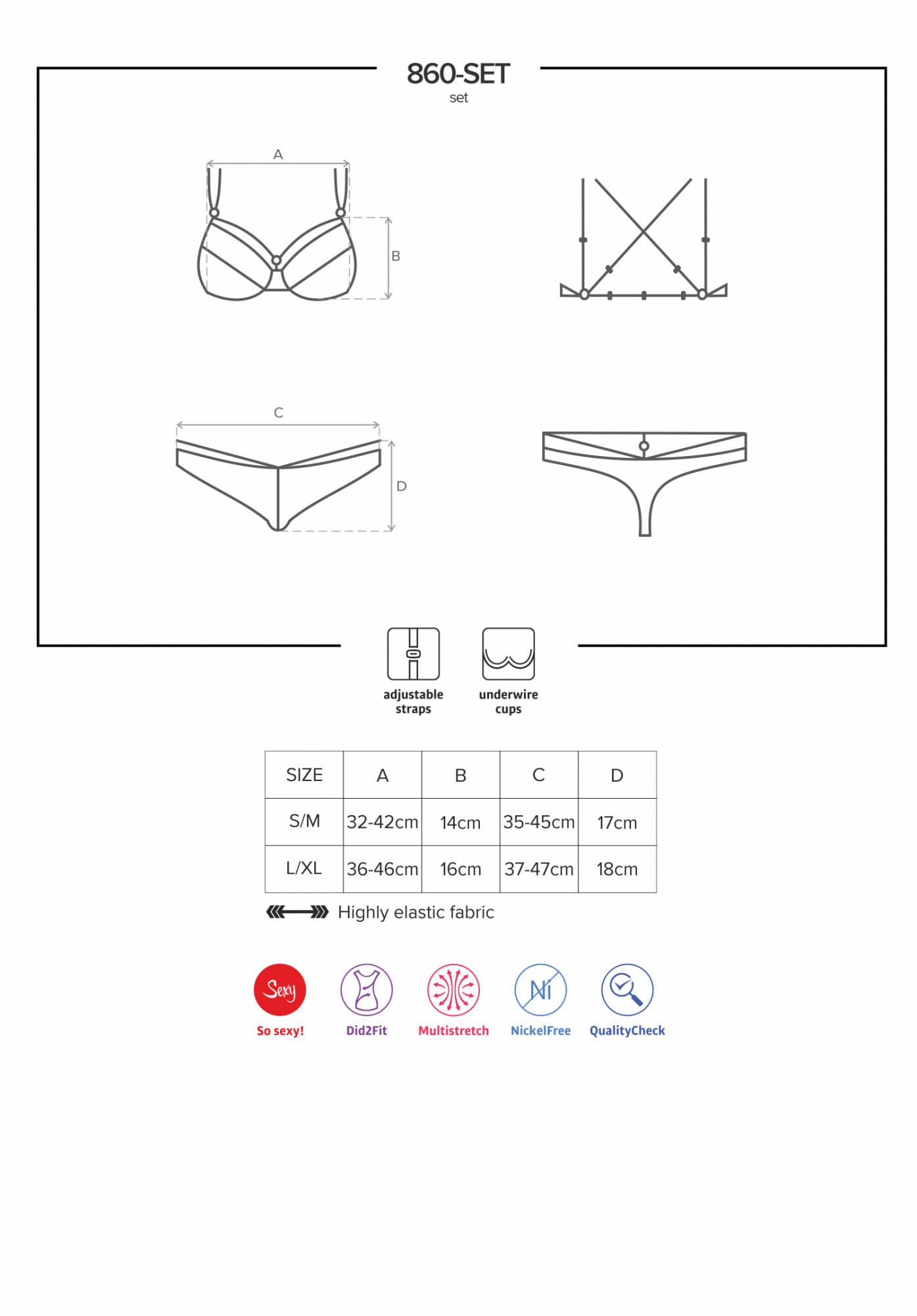 Produkt Jedinečný set 860 - SET black - Obsessive prodáváme v těchto velikostech: S/M, L/XLa barvách černá5901688218860, 5901688218877