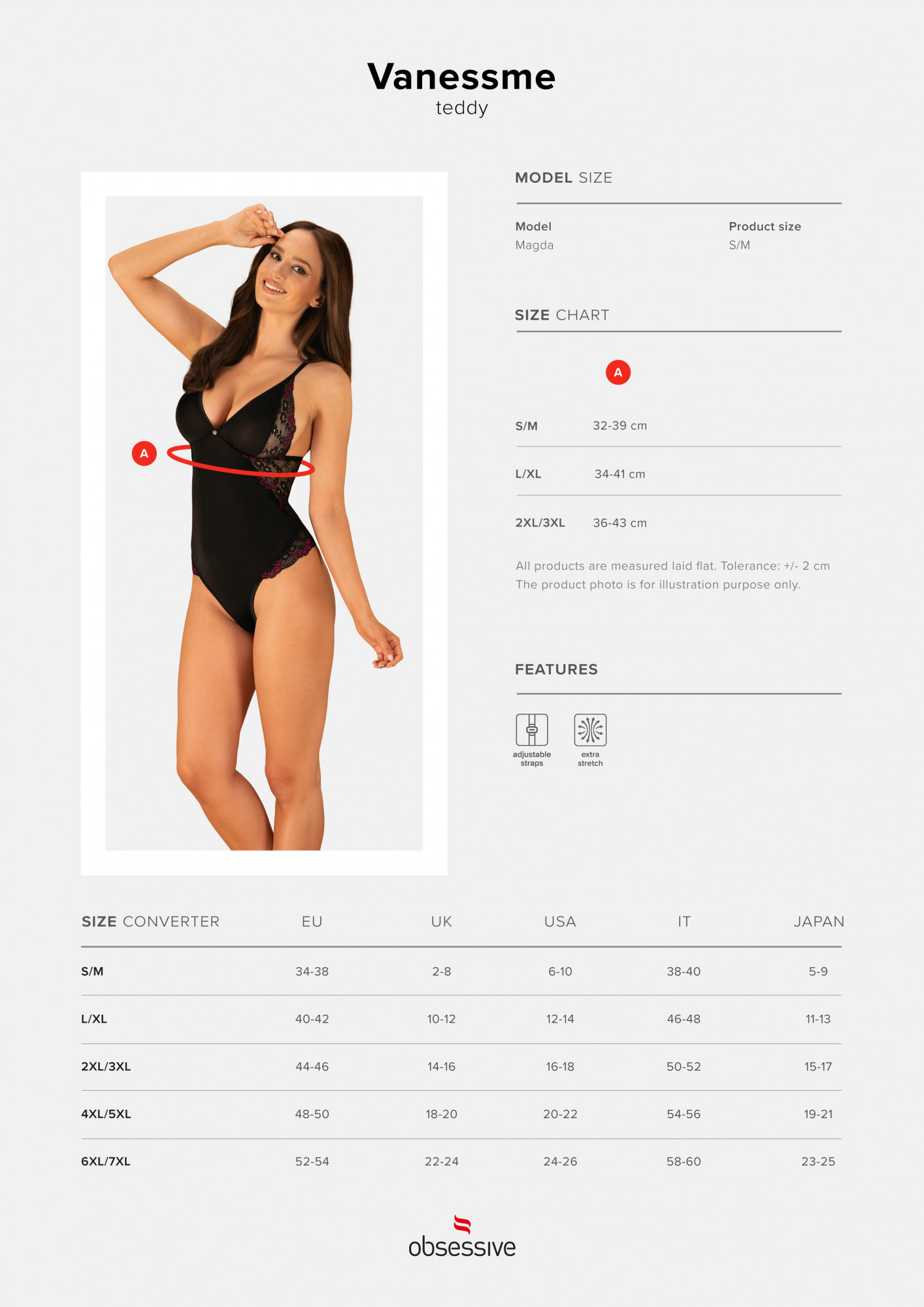 Produkt Jemné body Vanessme teddy 2XL/3XL - Obsessive prodáváme v těchto velikostech: 2XL/3XLa barvách černá5901688235119