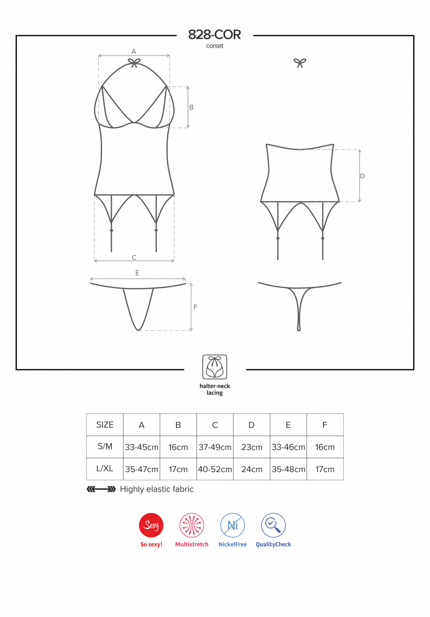 Produkt Korzet 828-COR corset - Obsessive prodáváme v těchto velikostech: L/XLa barvách černá5901688216217