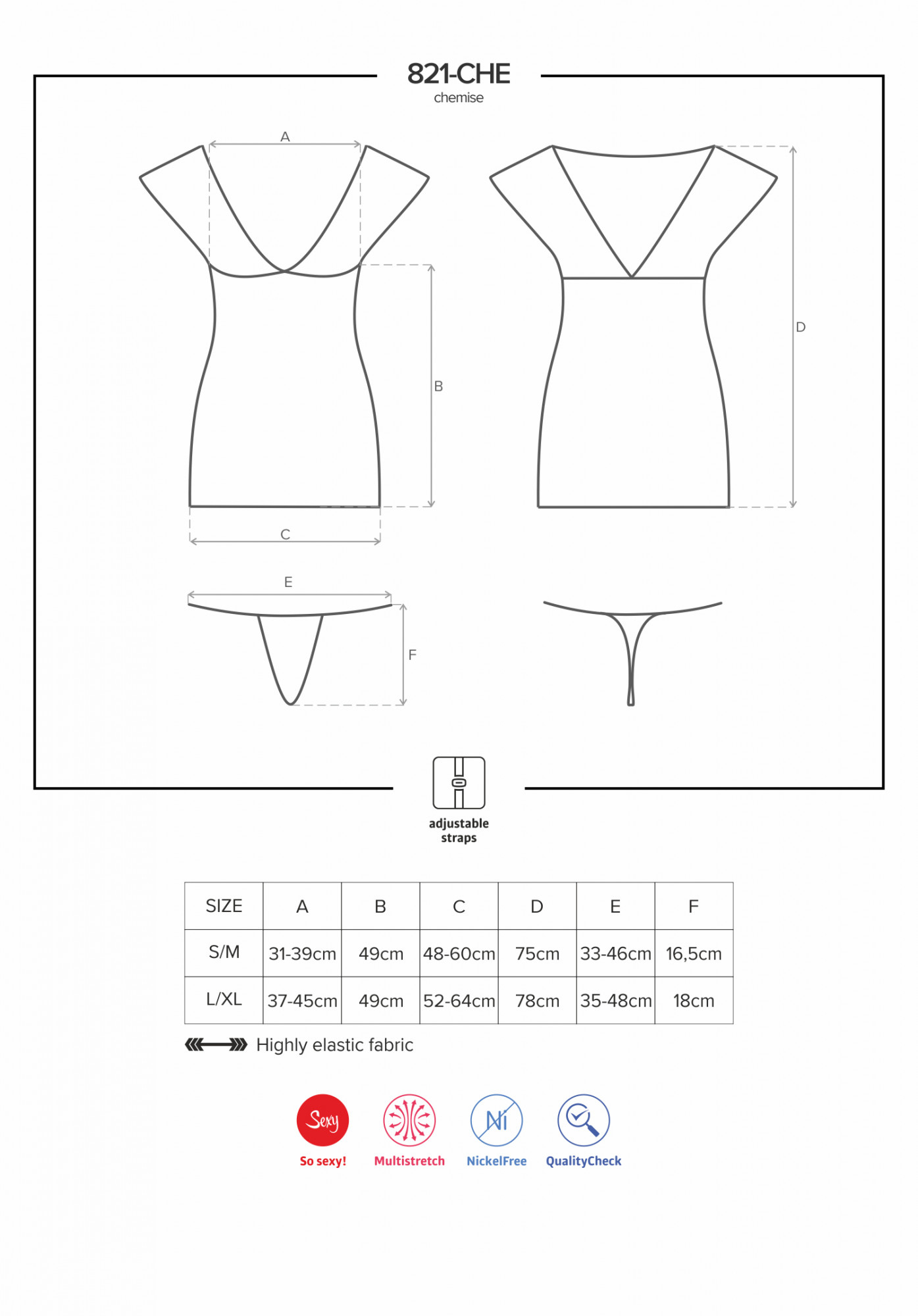 Produkt Košilka 821-CHE chemise - Obsessive prodáváme v těchto velikostech: S/M, L/XLa barvách černá5901688215128, 5901688215135