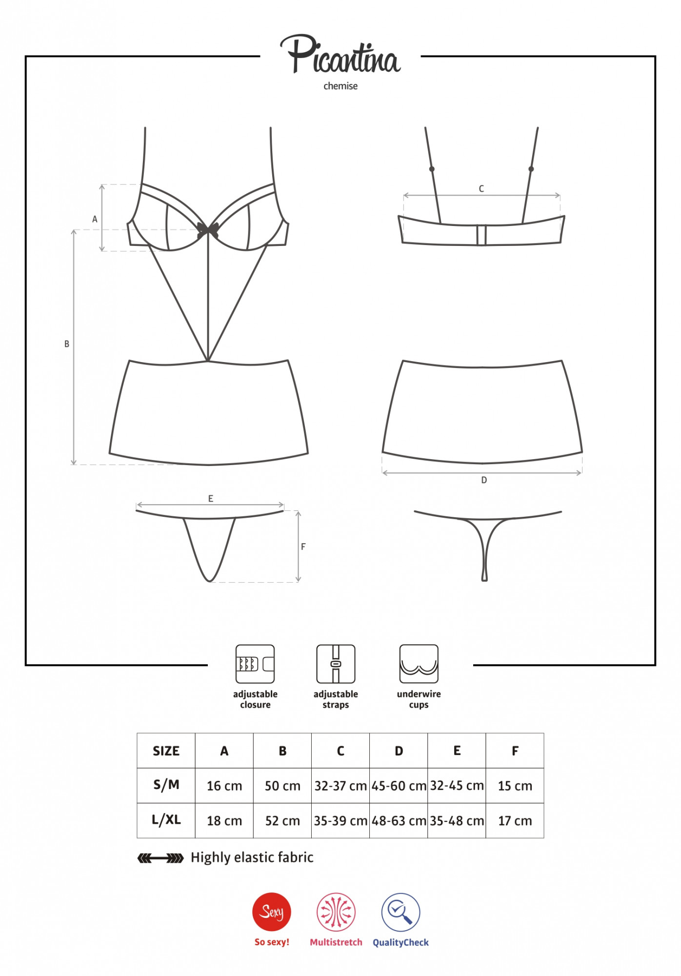 Produkt Košilka Picantina chemise - Obsessive prodáváme v těchto velikostech: S/M, L/XLa barvách černá5901688208632, 5901688208649