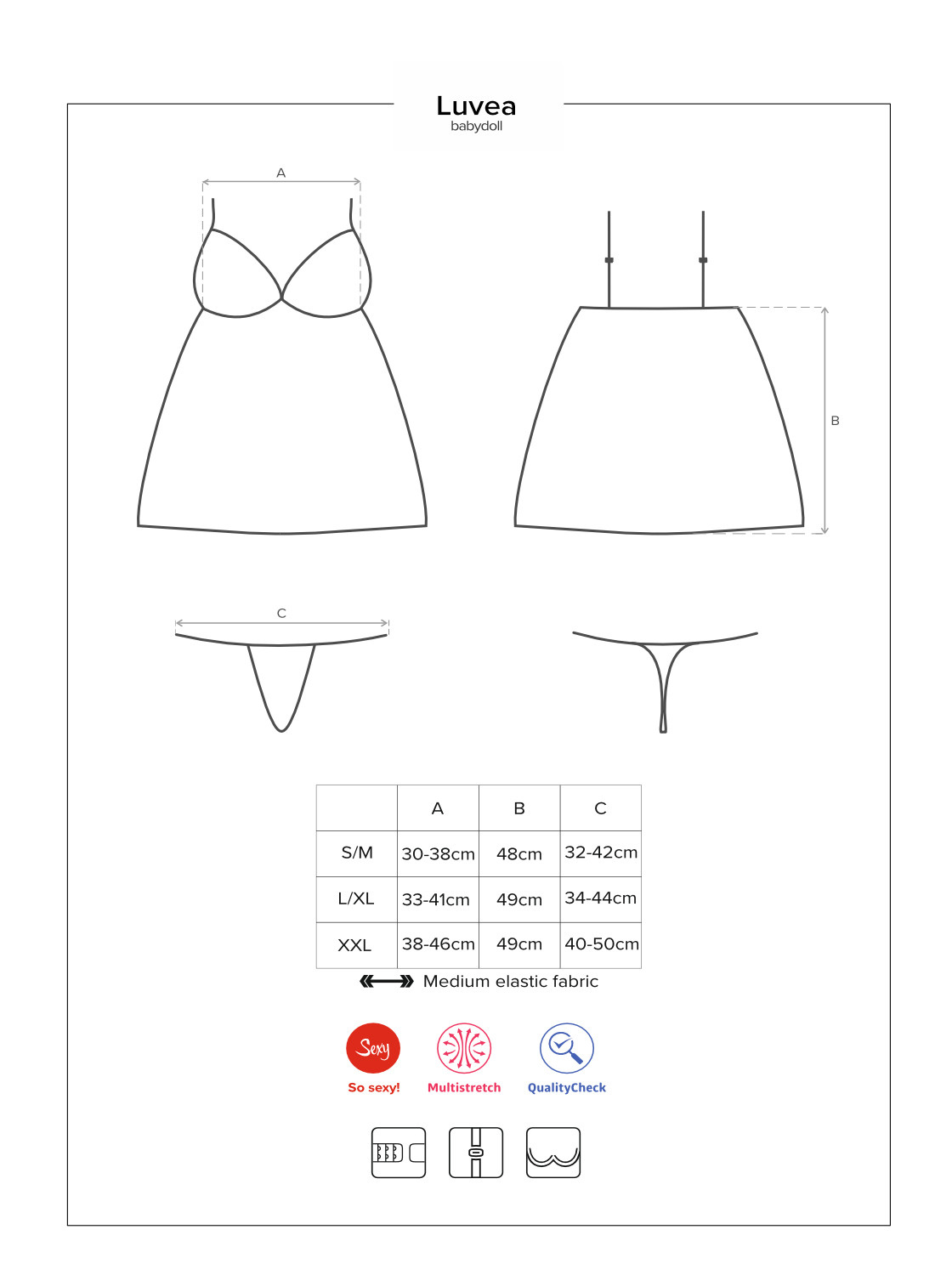 Luvae babydoll přináší smyslnost a kouzlo díky krásné podprsence a sexy, odkrytým zádům! Nyní budou noci, které strávíte společně se svým partnerem, žhavější a ještě fantastickější! Jen se nechte svést pro takové potěšení.