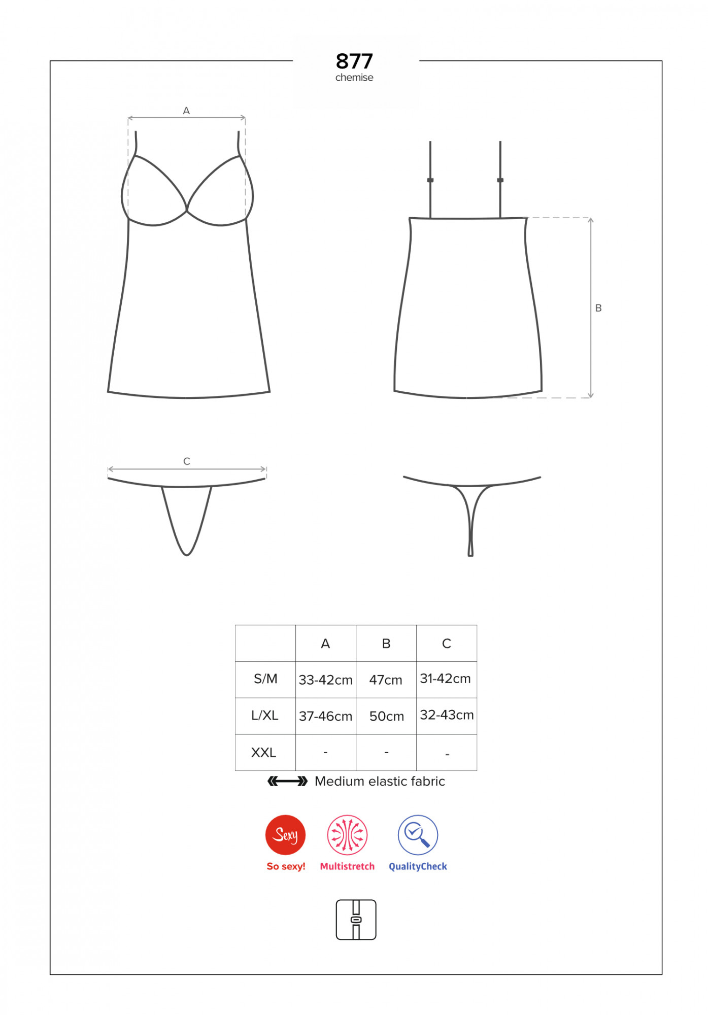 Produkt Nádherná košilka 877 - CHE - Obsessive prodáváme v těchto velikostech: S/M, L/XLa barvách černá5901688221372, 5901688221389