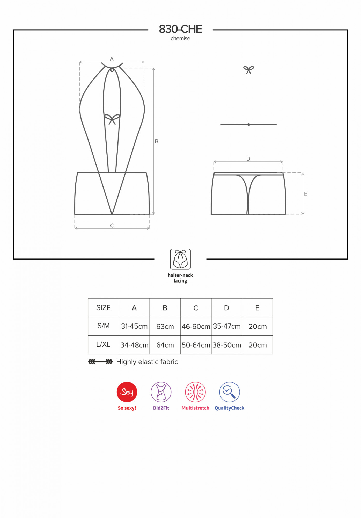Produkt Neodolatelná košilka 830 - CHE chemise - Obsessive prodáváme v těchto velikostech: S/M, L/XLa barvách černá5901688216651, 5901688216668