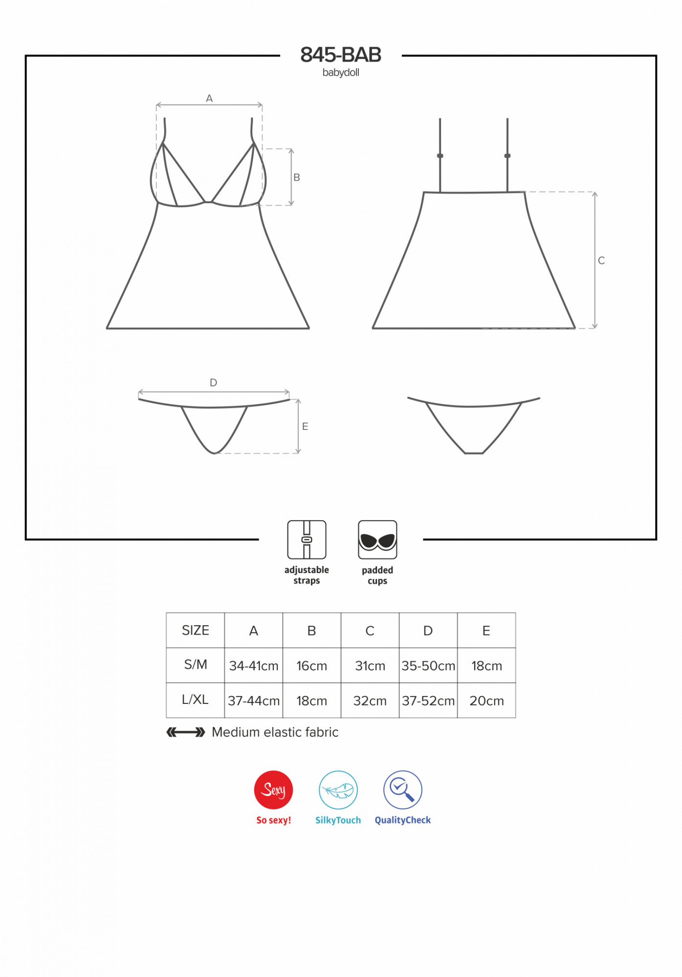 • výrobek obsahuje babydoll a černé, krajkové kalhotky