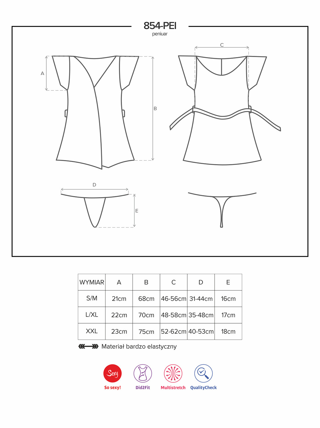 Produkt Okouzlující župan 854 - PEI - Obsessive prodáváme v těchto velikostech: S/Ma barvách černá5901688218211