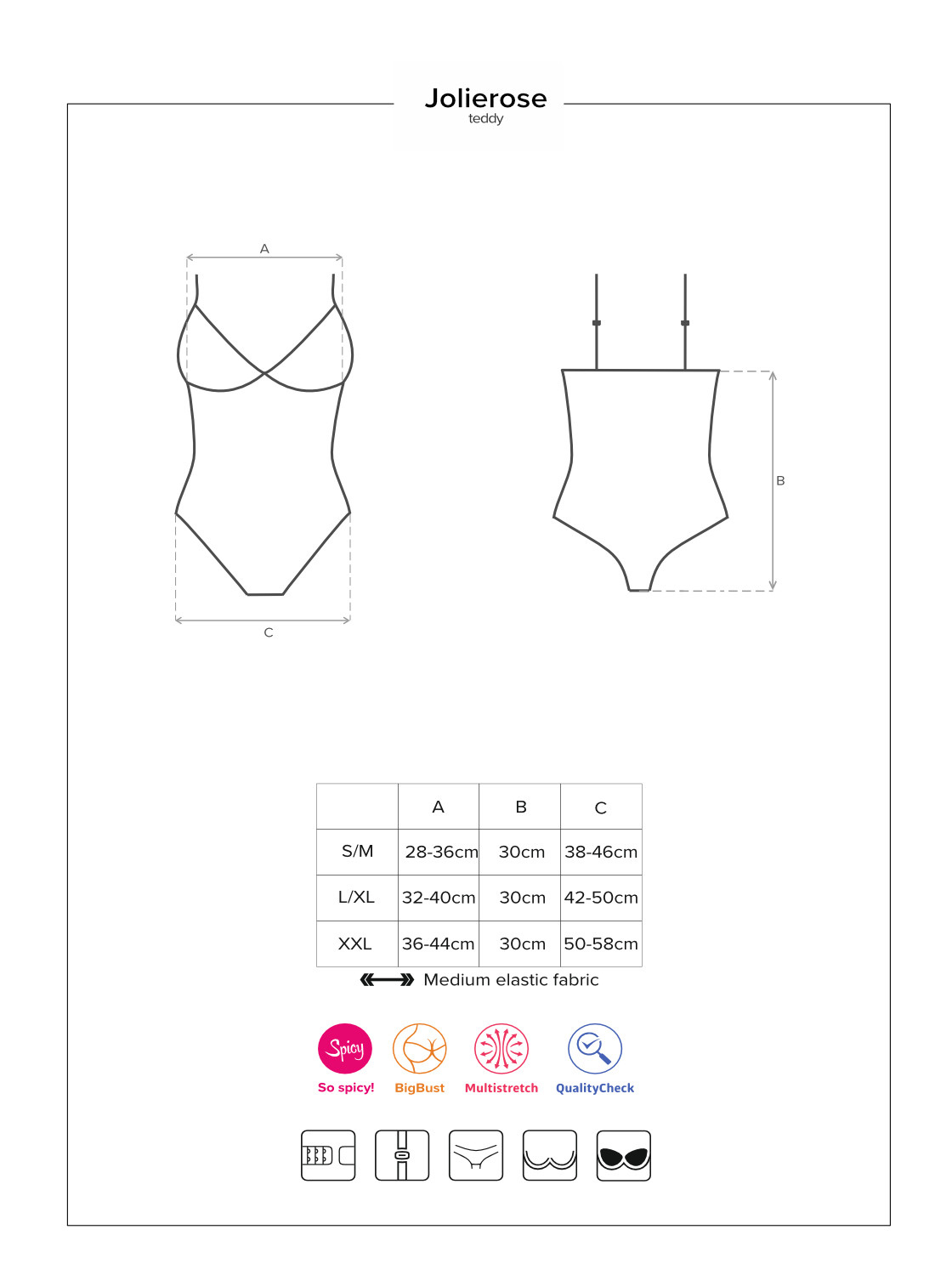 Svůdná a sexy? Ano, samozřejmě! Nepotřebujete zvláštní příležitost inspirovat vás a partnera k sexy hrátkám. Jolierose teddy je perfektní kombinací krásy a pikantnosti. Nečekejte - získejte ho ještě dnes a dopřejte si spoustu úžasných okamžiků ve vaší ložnici!