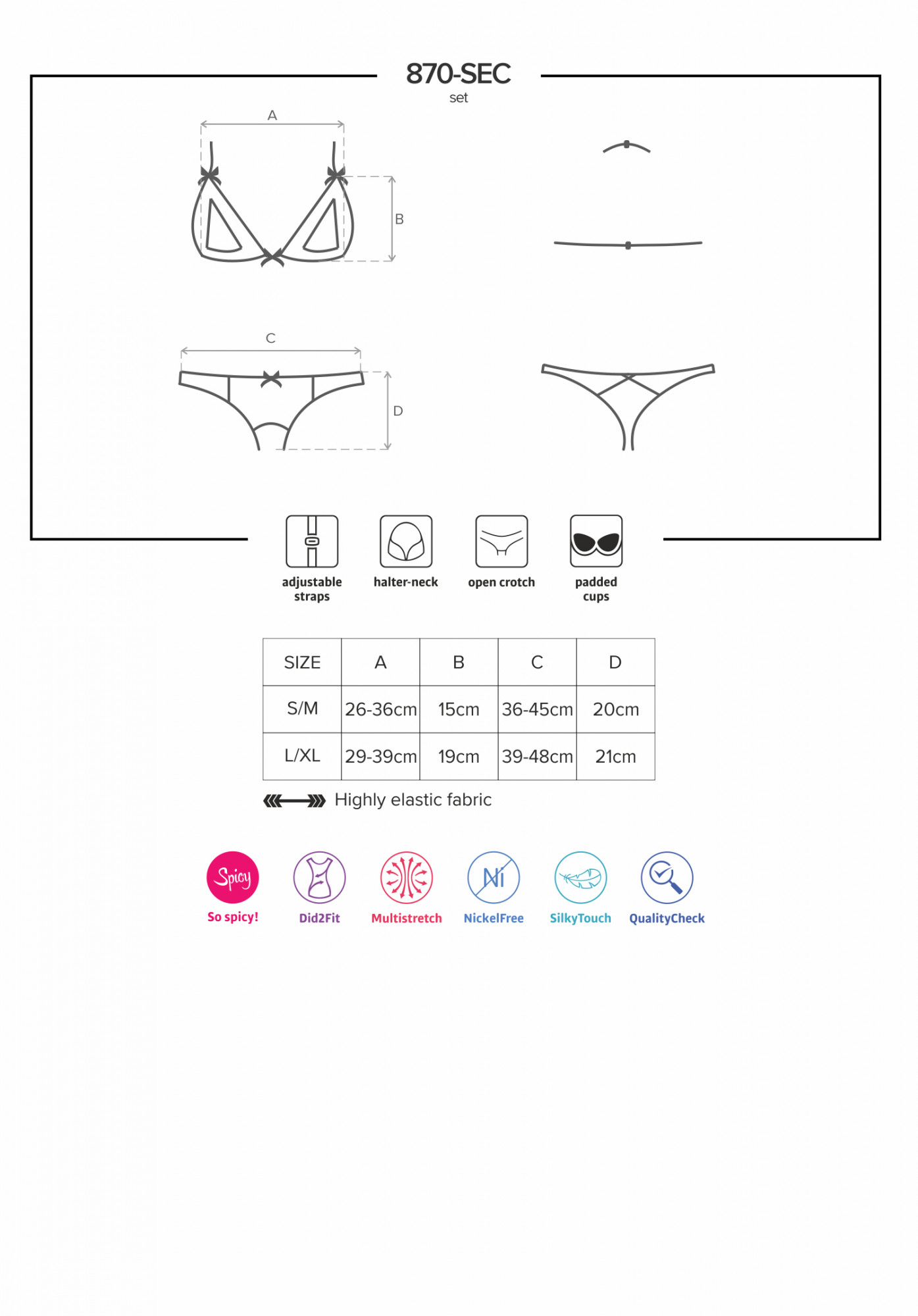 Produkt Pikantní set otevřený 870 - SEC - Obsessive prodáváme v těchto velikostech: S/M, L/XLa barvách červená5901688219836, 5901688219843