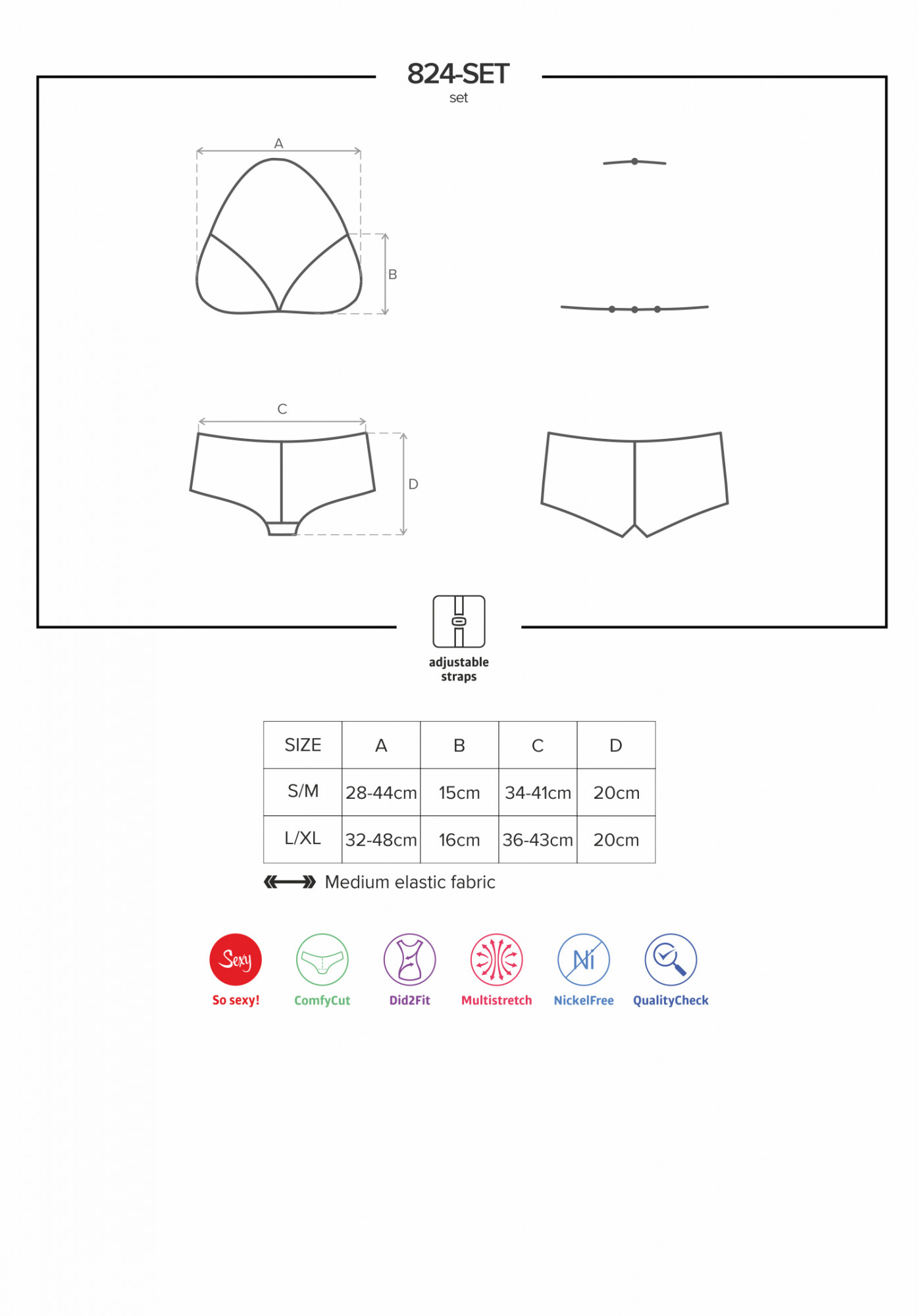 Produkt Set 824-SET - Obsessive prodáváme v těchto velikostech: S/M, L/XLa barvách černá5901688215562, 5901688215579