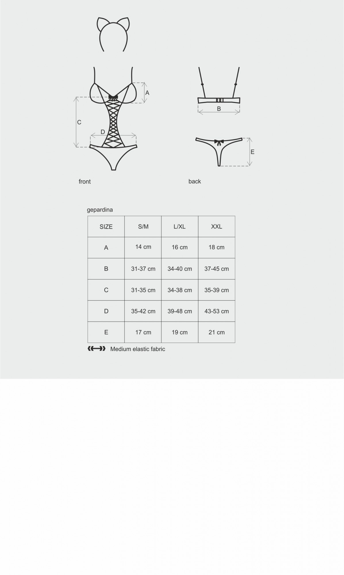 Produkt Sexy kostým Gepardina - Obsessive prodáváme v těchto velikostech: L/XLa barvách černá5901688208236