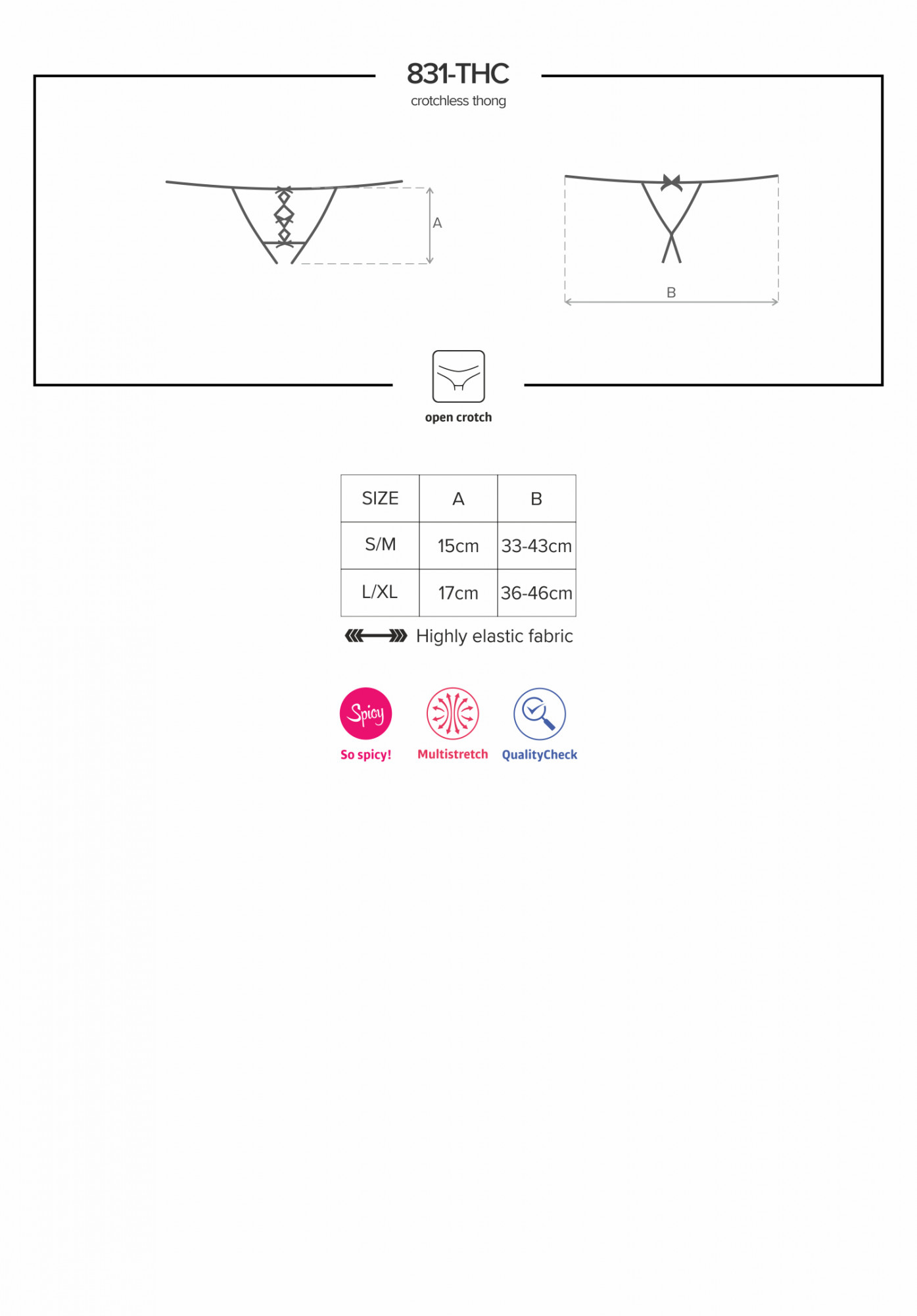 Produkt Sexy tanga 831 - THC thong otevřené - Obsessive prodáváme v těchto velikostech: S/M, L/XLa barvách černá5901688217016, 5901688217023