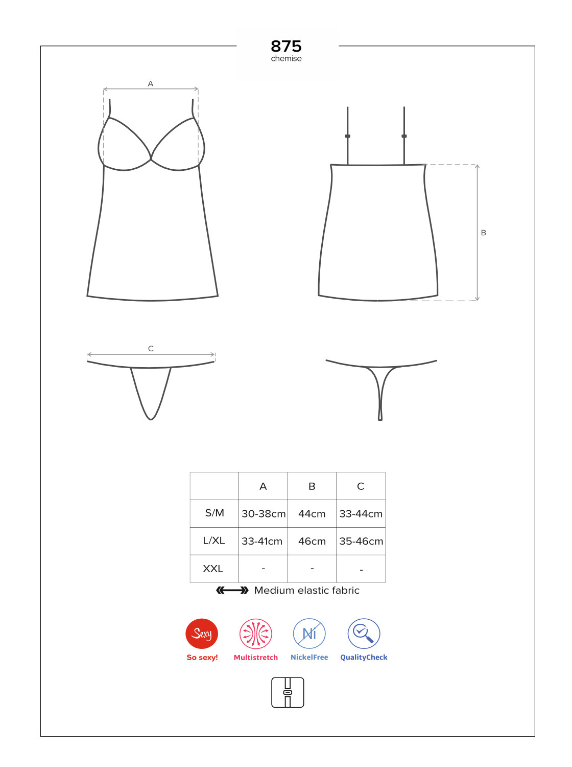 Produkt Úžasná košilka 875 - CHE - Obsessive prodáváme v těchto velikostech: S/M, L/XLa barvách černá5901688220153, 5901688220160
