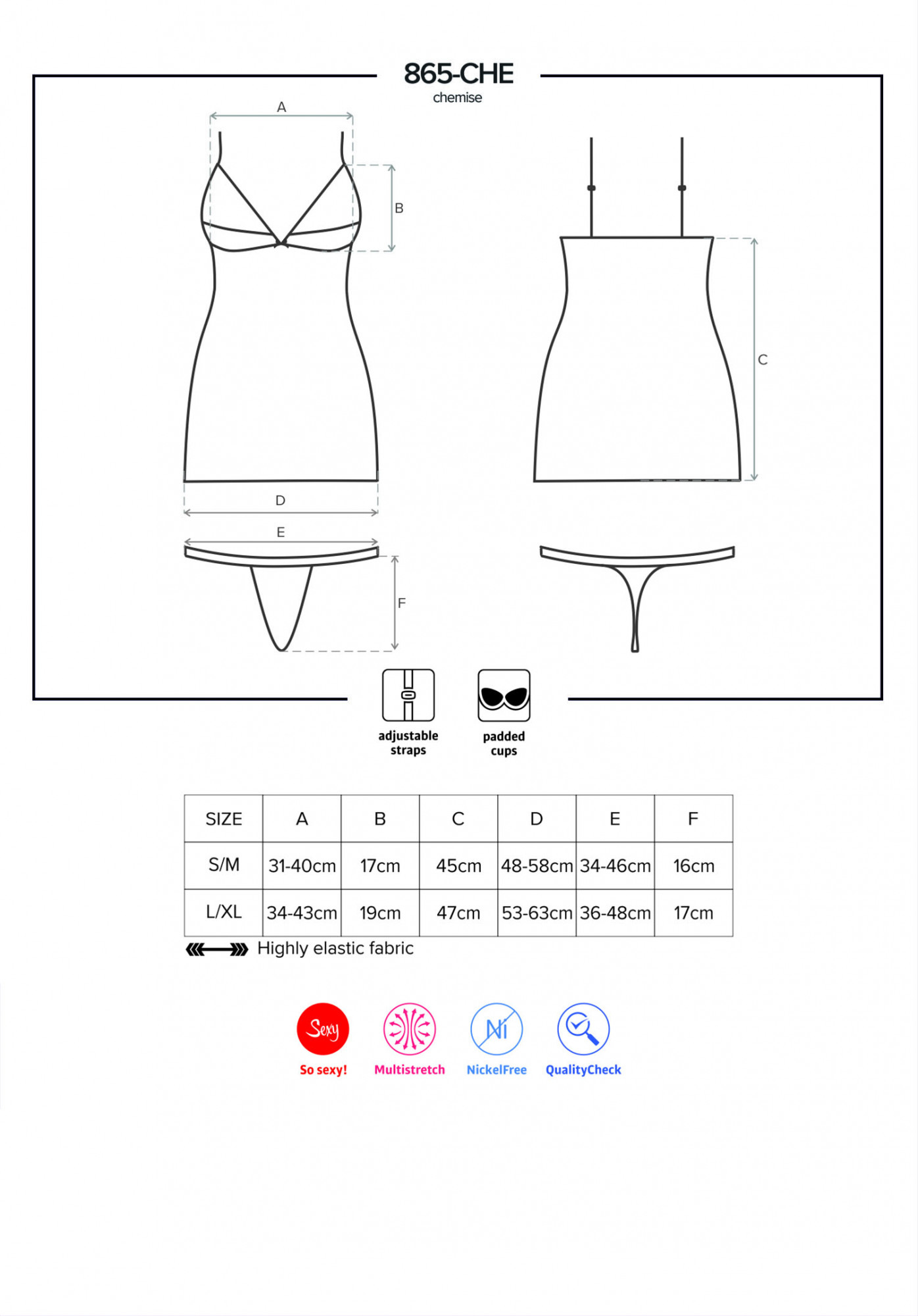 Produkt Vyzývavá košilka 865 - CHE - Obsessive prodáváme v těchto velikostech: S/M, L/XLa barvách černá5901688219416, 5901688219423