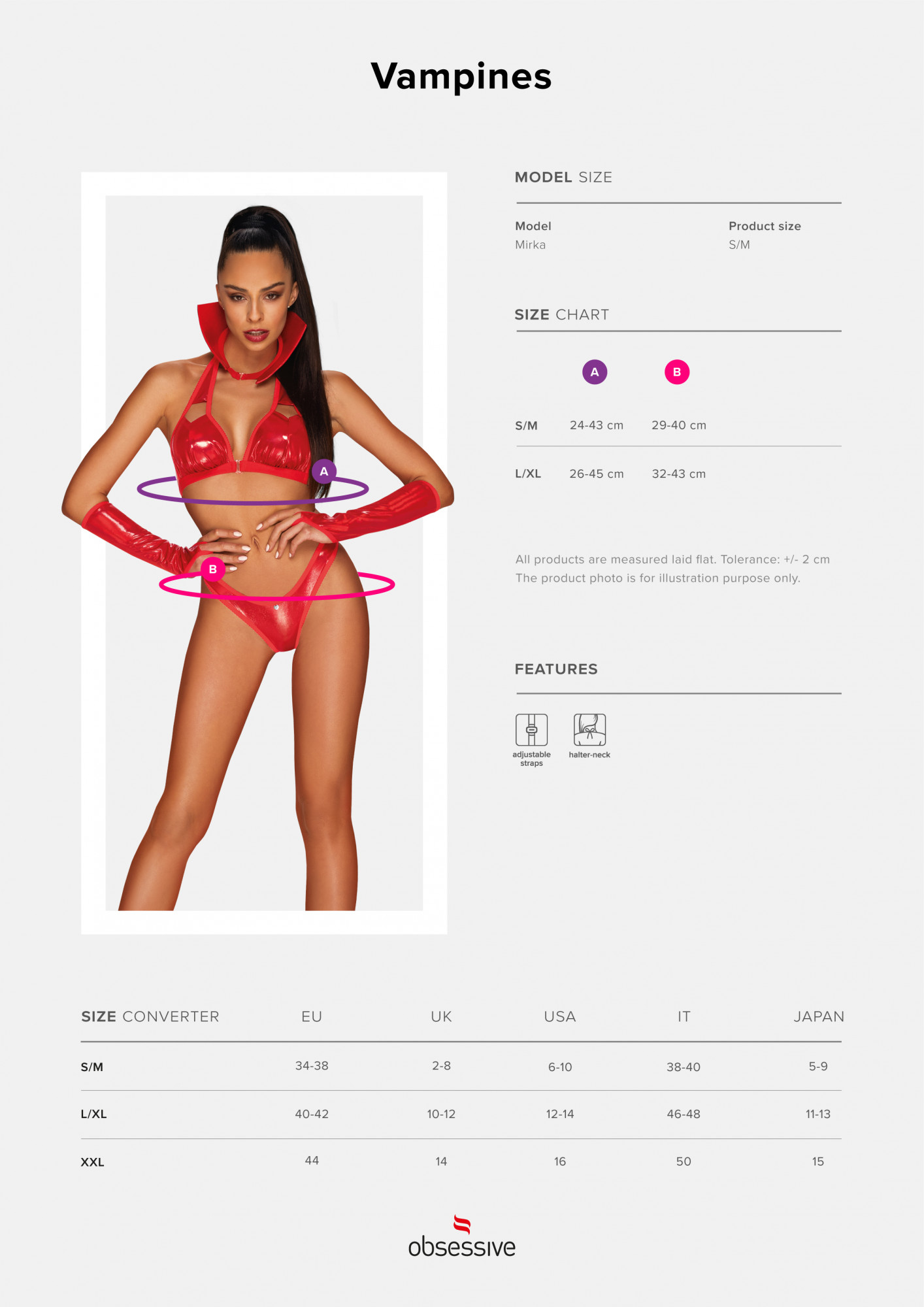Produkt Žhavý kostým Vampines - Obsessive prodáváme v těchto velikostech: S/M, L/XLa barvách červená5901688233276, 5901688233283