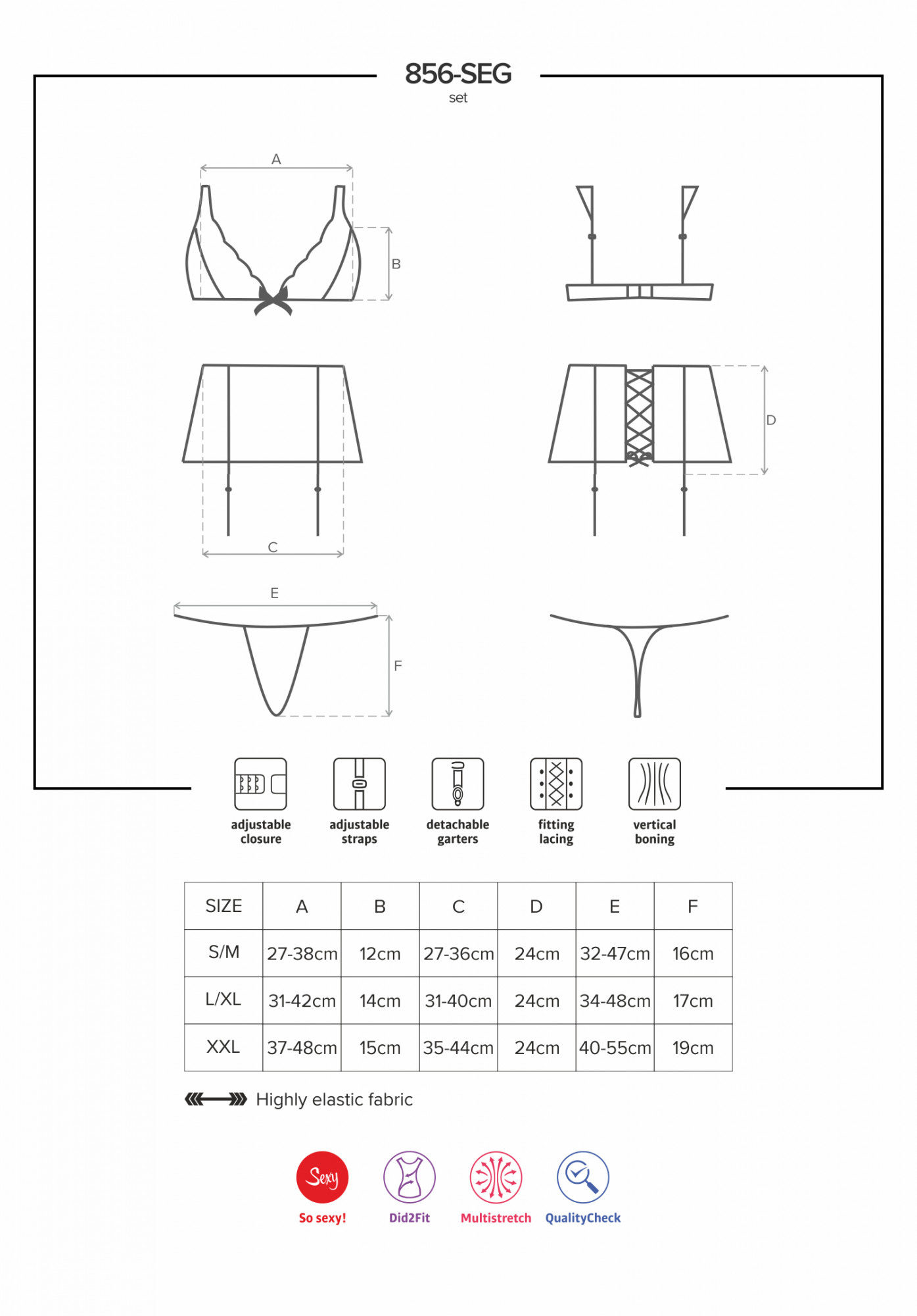 Produkt Žhavý set 856 - SEG - Obsessive prodáváme v těchto velikostech: S/Ma barvách černá5901688218426