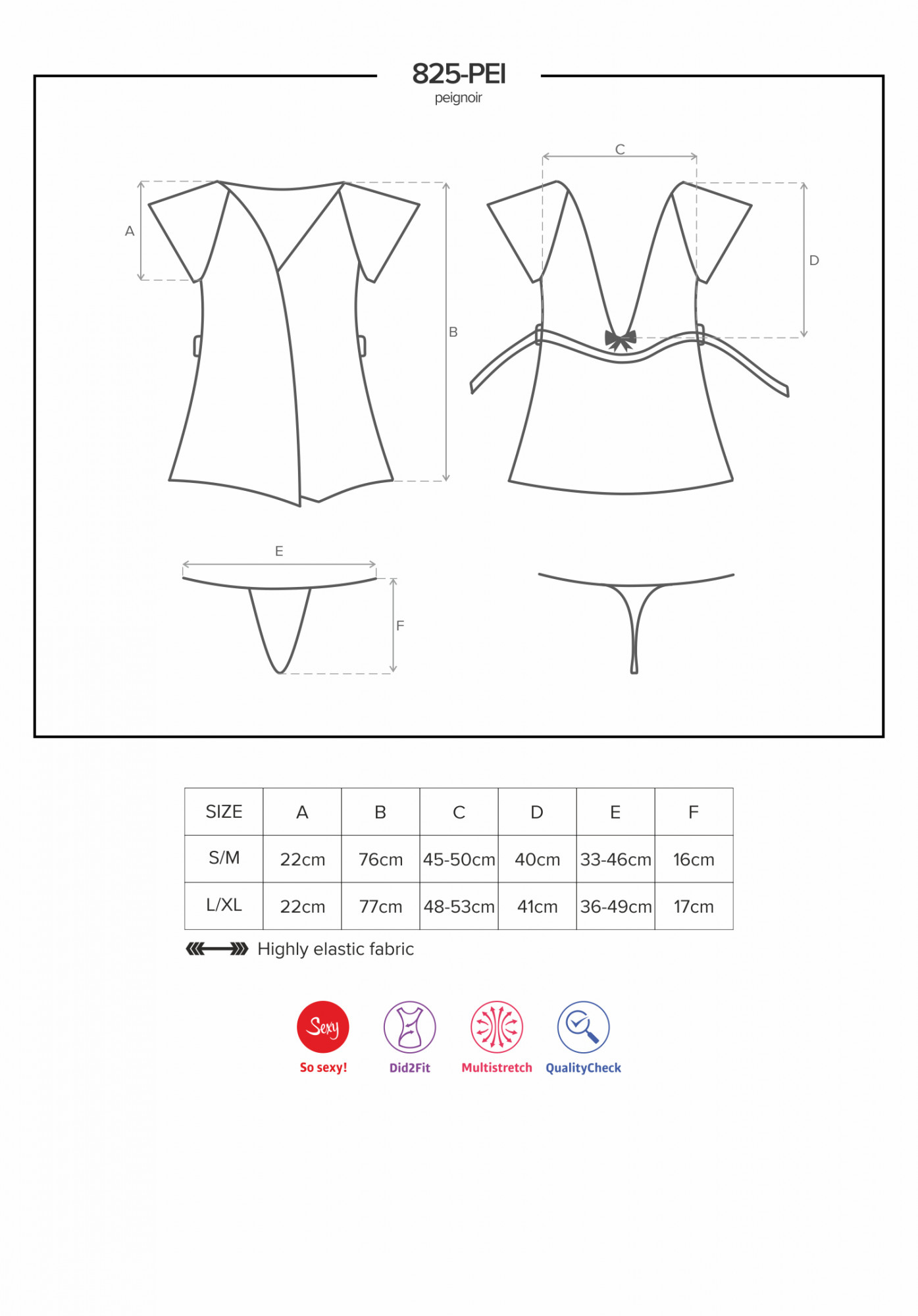 Produkt Župan 825-PEI peignoir - Obsessive prodáváme v těchto velikostech: L/XL, XXLa barvách modrá5901688215692, 5901688215708